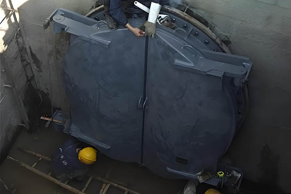 对于混凝土基座,我们**使用高强灌浆料填充门框与墙体之间的缝隙,确保受力均匀。铰轴安装是关键环节,*须保证水平度误差在 1/500 以内。如果是水下安装,需安排潜水员配合进行螺栓紧固,并使用力矩扳手控制预紧力。